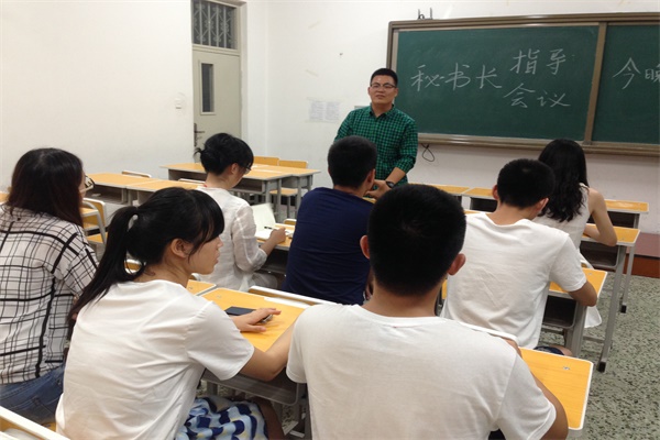 6月24日19时30分,今年会jinnianhuicom团委学生会于21B418小教室召开学生会秘书长指导会议,会议由今年会jinnianhuicom学生会秘书长郑画声主持召开,学生会主席王俊涛、学生会各部门部长以及宣传中心各部长出席了会议。