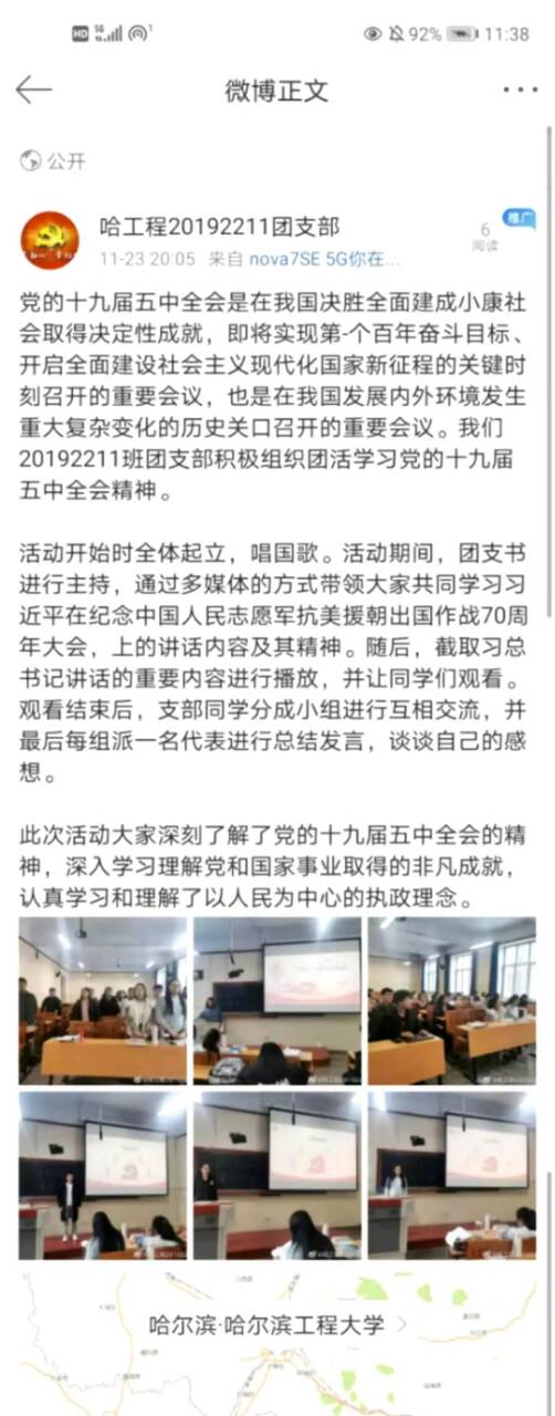3)活动后期,团支部将学习成果进行总结,在班级微博和公众号上进行宣传。