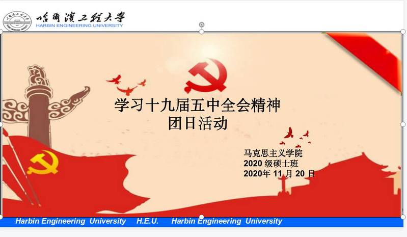 1) 团支书简要介绍并诵读了十九届五中全会所传达的精神意义,并且分享作为新时代的研究生如何贯彻落实新时代的青年精神;