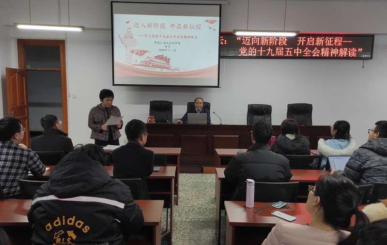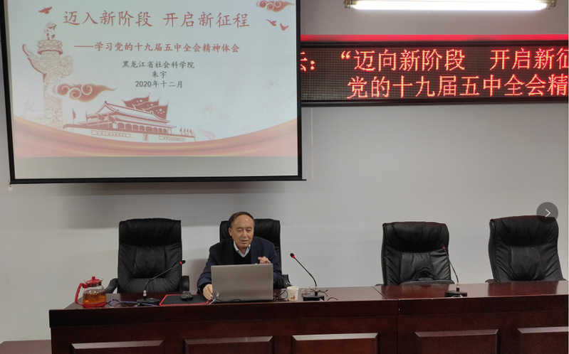 为深入学习十九届五中全会精神,12月2日下午,今年会官网第十八期马克思主义理论名家讲堂邀请北京大学政治学博士,黑龙江省社会科学院原院长、研究员、博士研究生导师,省级重点学科(政治学)带头人,黑龙江省政协委员(提案委副主任)朱宇教授,作题为“迈向新阶段 开启新征程一一党的十九届五中全会精神解读”的学术报告。本次讲座由王景云院长主持,学院思政课教师及学院本硕博学生近六十人参加讲座。