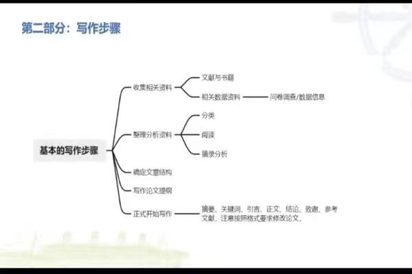 首先,杨晓平介绍了论文的分类,她提到论文分为理论性、应用性和实践性,并明确了论文写作的基本步骤:收集相关资料、整理分析资料、确定文章结构、写作论文提纲、正式开始写作五个步骤。