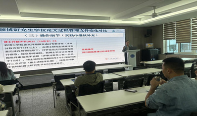 随后,教务办肖薇老师围绕“研究生教育综合管理信息系统”学位论文答辩模块秘书端操作流程展开专项培训,以“先建库、再建组、后填评价”的逻辑主线,分阶段拆解操作要点,确保参会人员熟练掌握系统功能。专项培训紧密结合实际工作需求,有效帮助参会人员快速把握系统使用要点,为学院研究生学位论文答辩环节的信息化、规范化管理提供了有力支持。